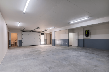 A moradia dispõe de uma garagem ampla com zona de tratamento de roupas e preparada para automóveis elétricos